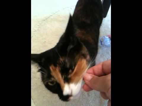 Rätt ofta när man sitter vid datorn kommer hon tassandes, ställer sig bredvid ens fötter och säger "Meeeow". Hon tycker väl att man sitter och stirrar ut i tomma intet på något konstigt sätt och det är ju bara dumt. Det är ju bättre att stirra på henne då, tycks hon tycka. Så jag säger "Va?" och tittar ner på henne och då står hon alltid så himla gulligt.
